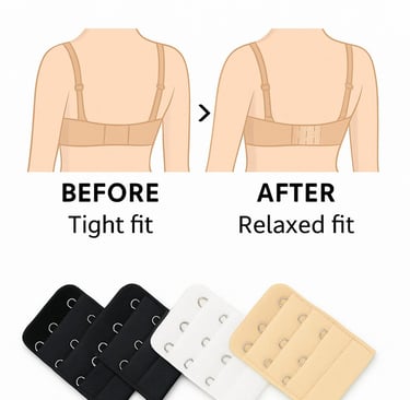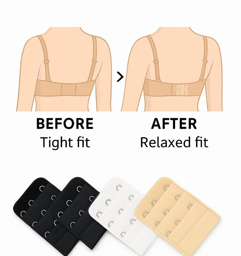 Comfortable and adjustable, this bra hook extender provides a perfect fit by adding extra length to your bra band.